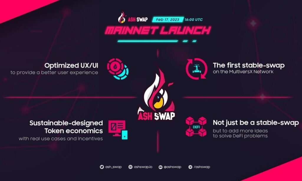 Ho Chi Minh City, Vietnam, February 11, 2023 — AshSwap, the first stable-swap DEX on the MultiversX blockchain (previously Elrond Network), is officially launching on the MultiversX mainnet on February 17. The DEX will seamlessly bridge critical DeFi functions and provide tighter spreads with a fraction of the liquidity on MultiversX.