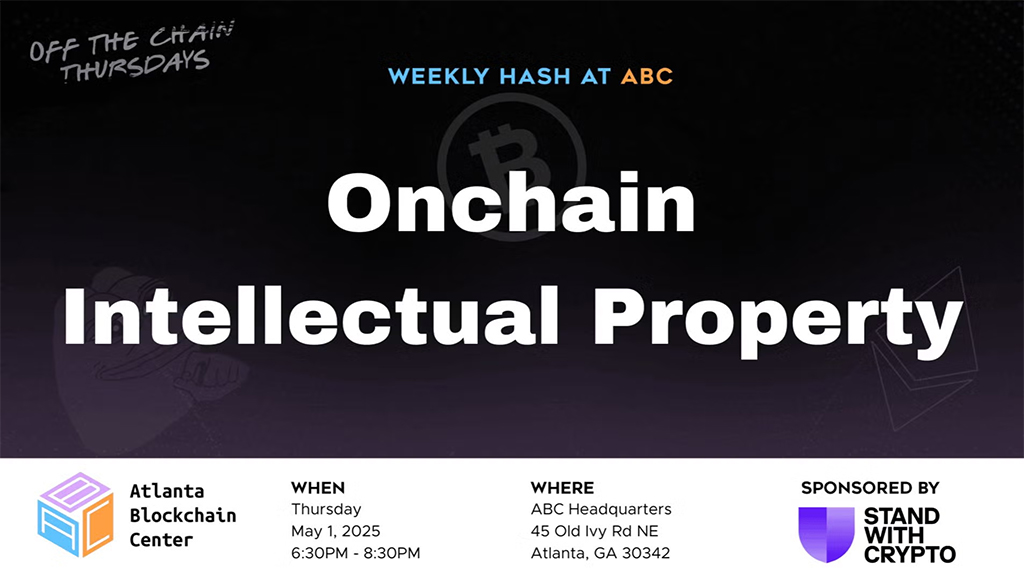 Join the Atlanta Blockchain Center for a dynamic discussion on Onchain Intellectual Property (IP) — where innovation, creativity, and blockchain technology meet. As more creators, brands, and developers build directly on the blockchain, understanding how IP rights are protected, enforced, and monetized in a decentralized world is becoming critical. We’ll explore how smart contracts, NFTs, and decentralized identifiers (DIDs) are reshaping the future of ownership, licensing, and creative freedom.