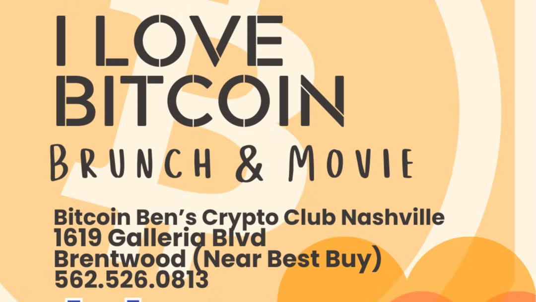 Drop by Bitcoin Ben’s Crypto Club in Cool Springs on Saturday, February 15, 2025, at 11:00 AM for a special brunch event dedicated to celebrating Bitcoin! Enjoy a delicious bite while connecting with fellow Bitcoin fans in a lively, friendly atmosphere. At 1:00 PM, join us for our Bitcoin Movie of the Week—a unique chance to relax and dive into Bitcoin-themed entertainment.