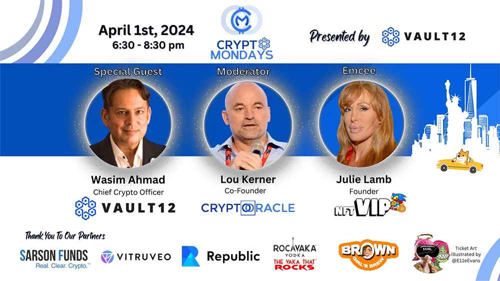Back Up! We have a big CryptoMondaysNYC planned Powered by Vault12
