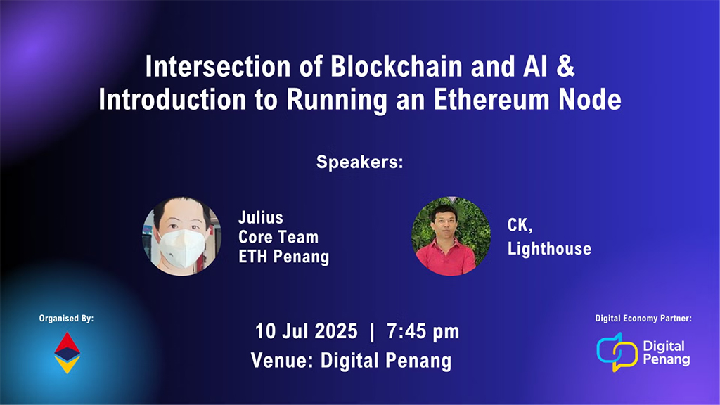 For this event, ETH Penang will have Julius walking us through the cutting-edge convergence of Blockchain and AI—uncovering how these technologies synergize to shape the future of decentralization.