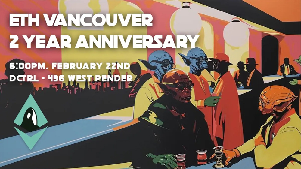 ✨ Ethereum Vancouver Meetup is a local meetup for the Ethereum community in Vancouver, hosted every Thursday night at DCTRL (436 West Pender).