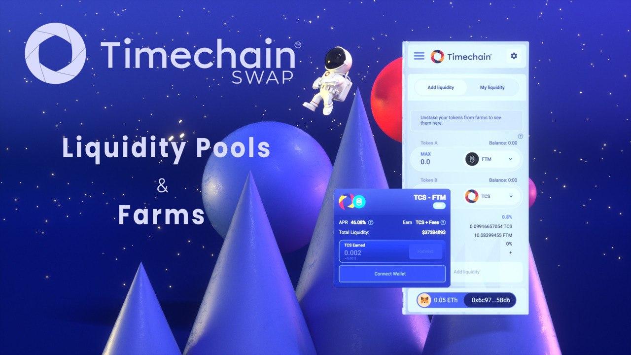 Montreal, Canada, January 24, 2022 // Timechain, a decentralized exchange aggregator and permissionless lending and borrowing protocol, has introduced Automated Market Maker (AMM) liquidity pools, yield farming and staking functionality on its TimechainSwap DEX.